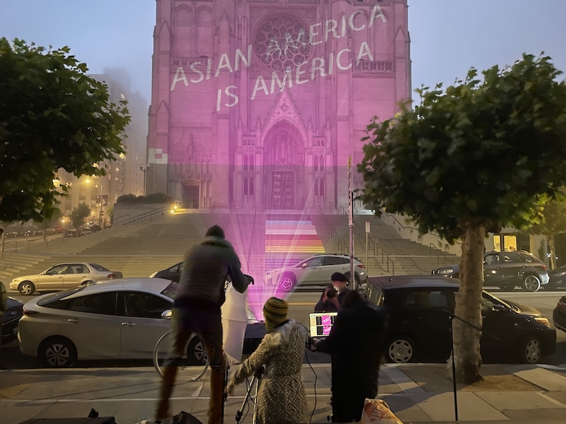 In early 2021, in response to the growing epidemic of violence against Asian Americans in the United States, Christy Chan reached out to MCAM staff with an idea for a mobile, guerrilla public art project that would beam images and messages of resilience by Asian American artists in English and eight different Asian languages onto the walls of high-rise buildings throughout the Bay Area.