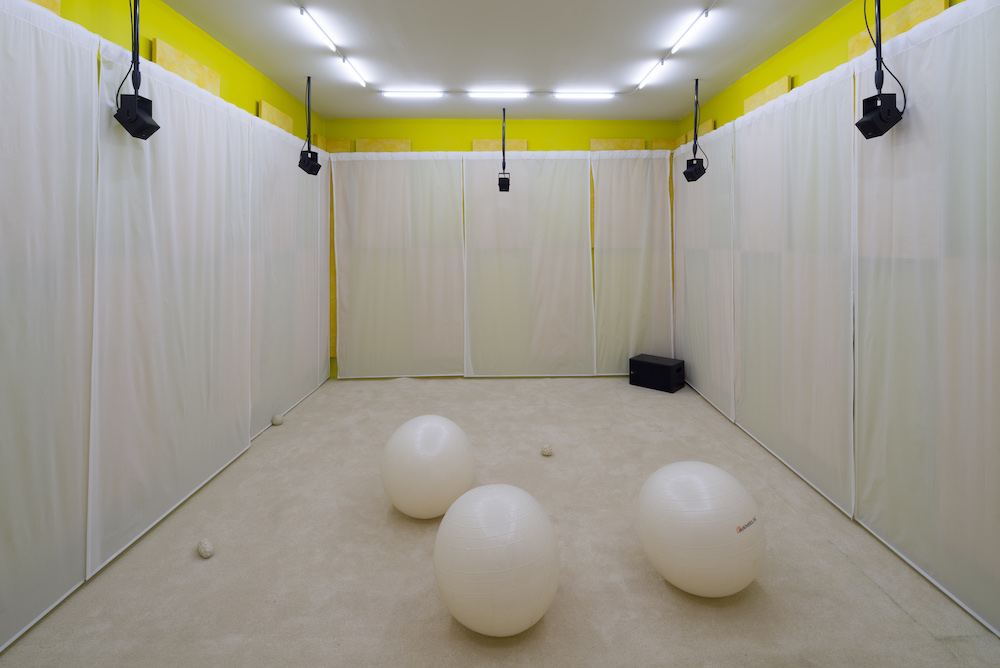 In A Healing, Gork was interested in how the relationships among sound, environment, and experience—the structure of the surrounding walls, the textures of the materials that cover them, the feeling of balancing on a yoga ball—create an experience of listening that is both felt and heard.