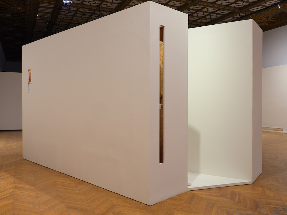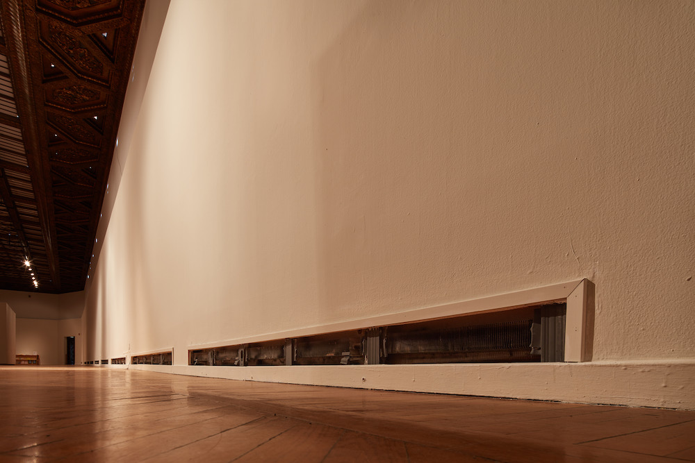 K.R.M. Mooney’s N I- XVIII, S I - XVIII, consisted of subtle interventions in the museum’s architecture to explore the intersections of objects, bodies, and space. Mooney creates work that disrupts existing regimes of authority, legitimacy, and use, forcing viewers to recalibrate their perspectives on where and how to look. In exposing the interior of the gallery walls, this site-specific work simultaneously revealed and obfuscated a physical history of a space that is often overlooked or deliberately masked.