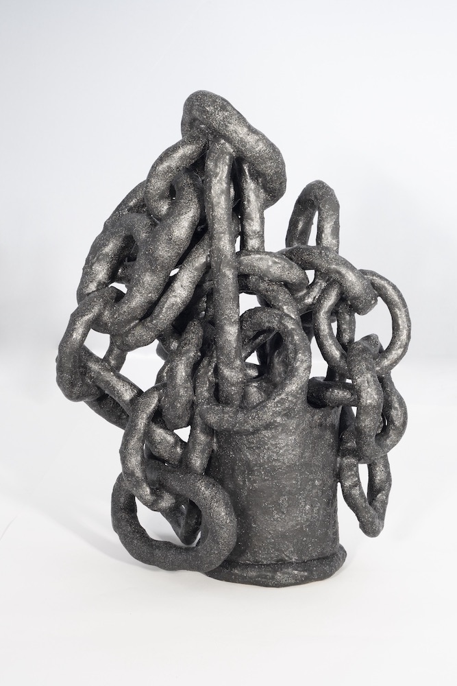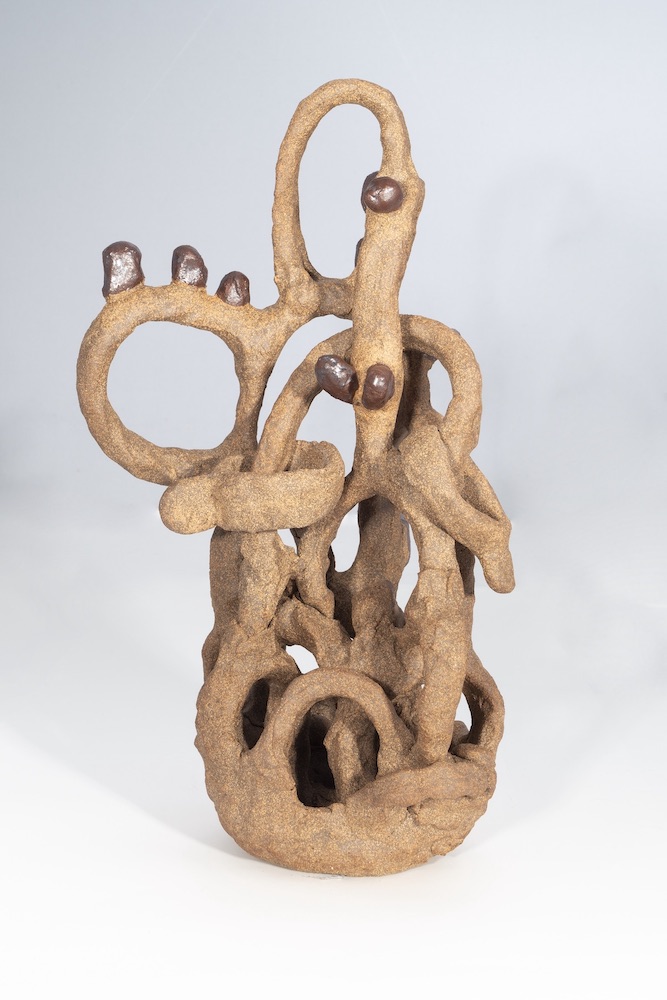In addition to the museum collection, this interest in experimental ceramics continues in our exhibition program. The exhibition Kari Marboe: Duplicating Daniel (2020) traced Marboe’s attempts to recreate an original sculpture, recorded as missing from MCAM’s permanent collection, by the influential but under-recognized ceramicist Daniel Rhodes. Using data collected from research in the museum’s archives and descriptive information mined from interviews with artists and anecdotes from peers in the field of art, the exhibition included Marboe’s numerous attempts to create physical “replicas” of Rhodes’ sculpture including hand-built objects, 3-D printed ceramic models, and written descriptions from colleagues. Ultimately, the museum acquired two of Marboe’s pieces as “replacements” for the missing Daniel Rhodes sculpture, demonstrating the generative possibilities of collection and exhibition archives through the medium of clay.