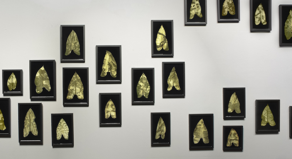 Danh utilizes a specific organic technique of his own invention to create these prints, producing a chlorophyll print that embeds photographic images onto leaves through photosynthesis. Danh also captured the aftermath of the American-Vietnam War through daguerreotypes, one of the oldest forms of photography dating back to the 19th-century. The daguerreotype is a process in which an image is formed on a metal plate through exposure to light and can easily be wiped away if not encased in glass. The beauty of the daguerreotype, both aesthetically and metaphorically, speaks to the fragility of history and memory.