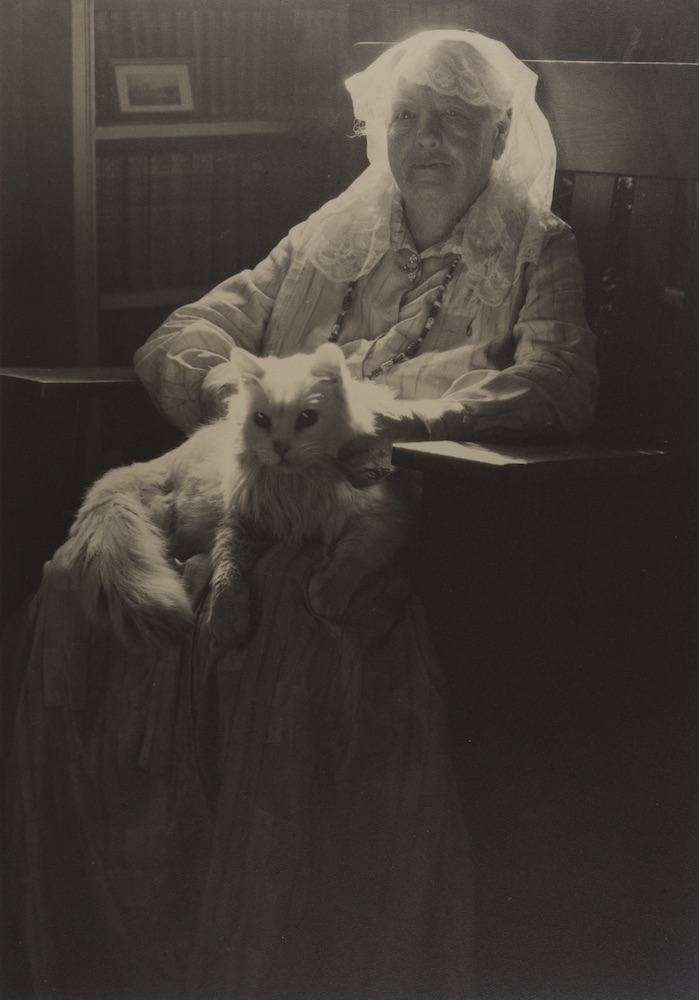 Due to their early friendship, MCAM has early photographs by Adams that were in Bender’s personal collection. This includes a remarkable portrait of Ina Coolbrith, California’s first Poet Laureate and prominent San Francisco literary figure, taken in 1926. Introduced to one another by Bender, Adams captures Coolbrith and her white Persian cat using the soft-focus Pictorialist aesthetic that he would later denounce as part of Group f/64.