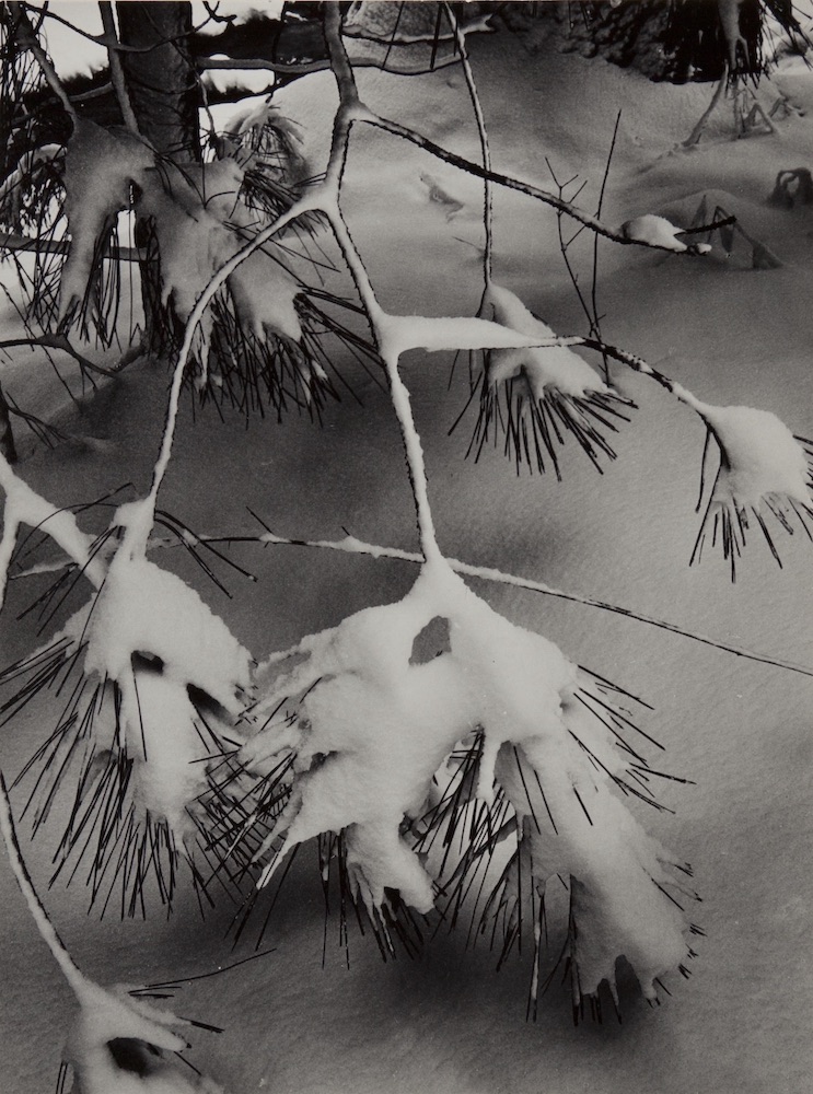 Winter—Yosemite Valley, 1959, epitomizes Adams’ extensive work photographing the natural wonders of Yosemite Valley. This image is a microcosm of his body of work, conveying the same aesthetic charm of nature that his more majestic pieces of El Capitan boast, but in a more intimate manner.
