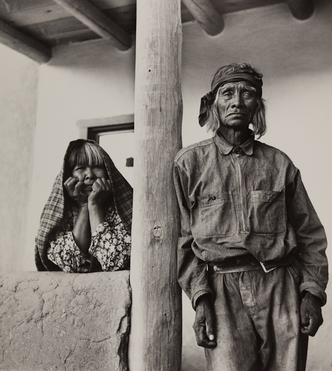 The collection also contains her seminal portrait study of a San Ildefonso Indian couple, made in 1941. The image was selected by noted photographer Edward Steichen for inclusion in the Museum of Modern Art’s exhibition The Family of Man that was visited by over 9 million people on its world tour. Powerful in its depiction, today the work sparks debate over the photographic transformation of people into representatives of a population. Even a sympathetic portrayal intended to ennoble its subject can sacrifice complexity to achieve an iconic image.