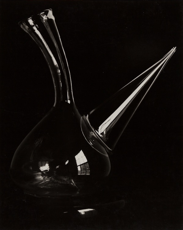 Other female members of Group f/64 included Sonya Noskowiak and Consuelo Kanaga. Noskowiak was born in Germany and moved with her family to Los Angeles at age fifteen. Ten years later, she began her career in photography at the L.A. studio of John Hagemeyer. In 1929, Noskowiak began a five-year stint as a darkroom assistant to Edward Weston, developing her own aesthetic style in conjunction with Group f/64’s modernist goals. In MCAM’s architectural portrait of a glass vessel, Noskowiak captures the detail of the glass surface against the dark atmosphere by closing the camera lens to the smallest aperture and leaving the shutter open for an extended period of time. Defining a sharp focus on a transparent form, highly contrasted against a deep black backdrop, Noskowiak achieves stunning technical form.
